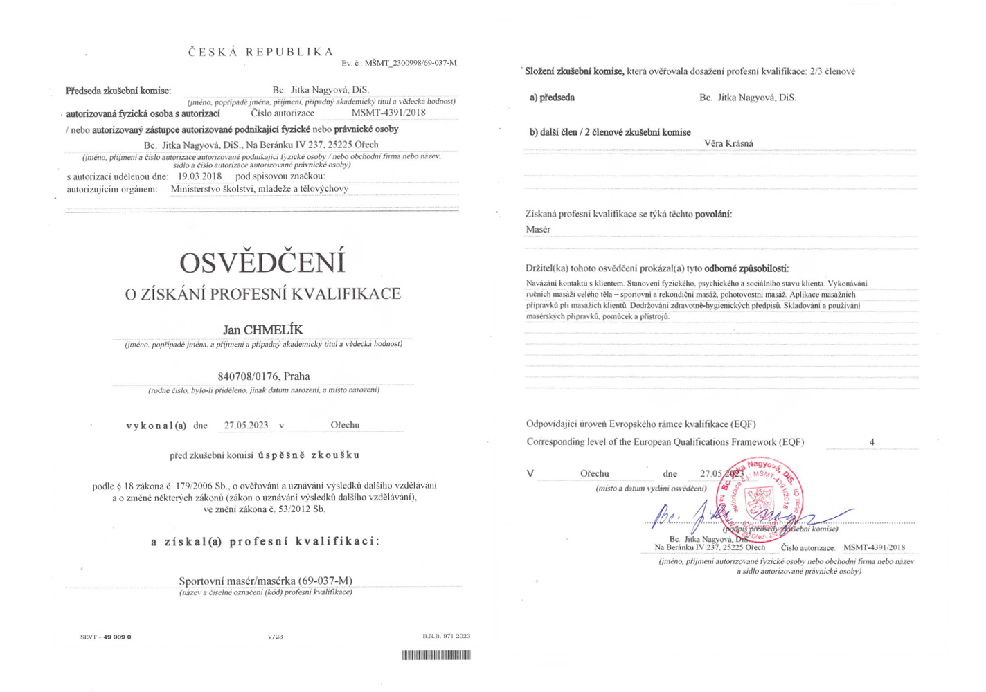 Zaměřuji se na dva druhy masáží: relaxační (pomáhá uvolnit stres a napětí) a sportovní (podporuje regeneraci svalů po fyzické námaze). Jsem držitelem profesního certifikátu.